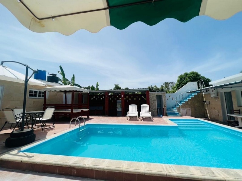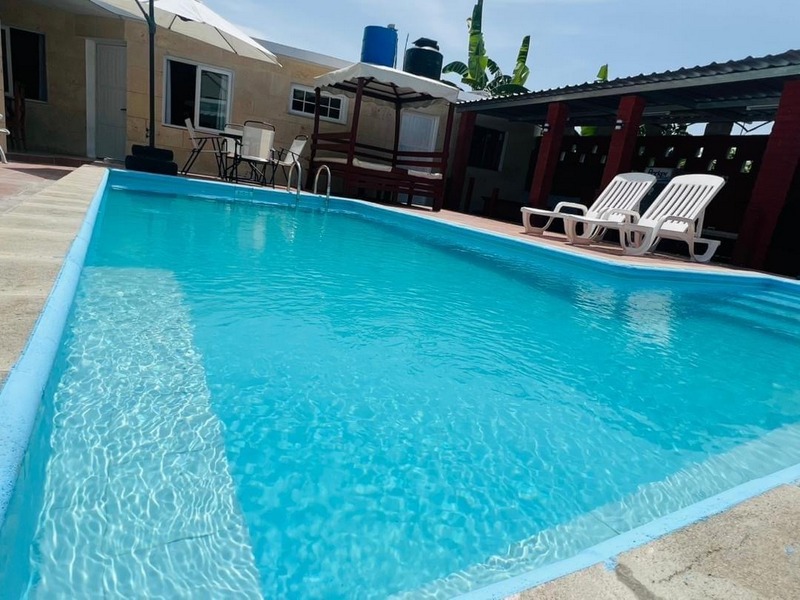 Sumérgete en nuestra área de piscina totalmente nueva, diseñada para tu disfrute. Con sistema de recirculación de agua, tumbonas para tomar el sol, cama techada de descanso y un rancho con parrillada, encontrarás el lugar perfecto para relajarte y disfrutar de tu estancia.